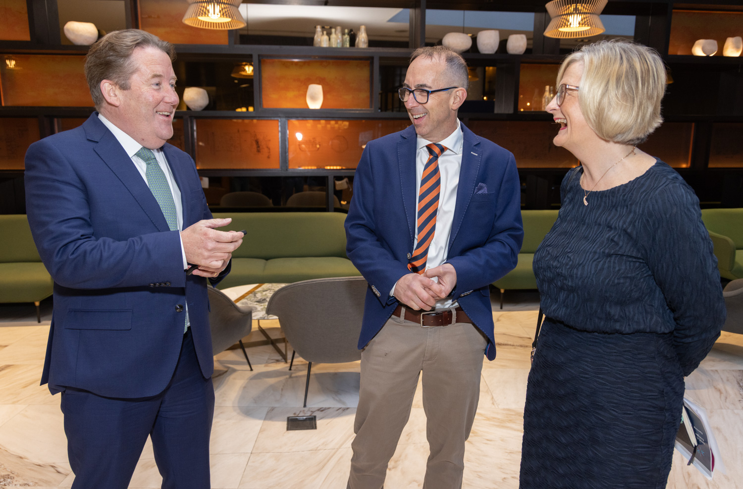 Minister Darragh O’Brien TD meets with Larry O'Connell and Elizabeth Canavan (Director and Deputy Chair of NESC respectively) ahead of the conference.