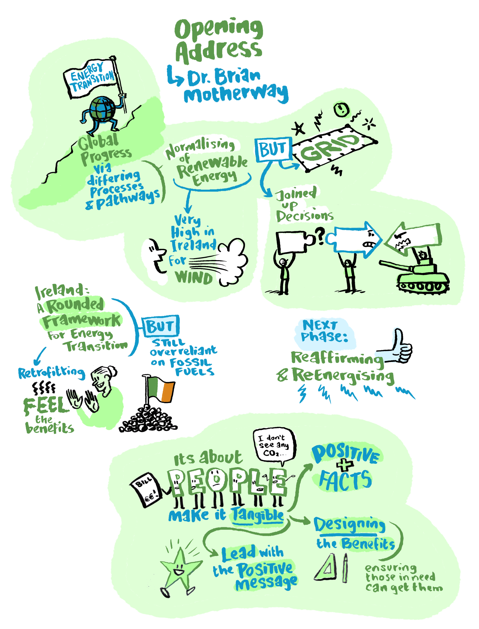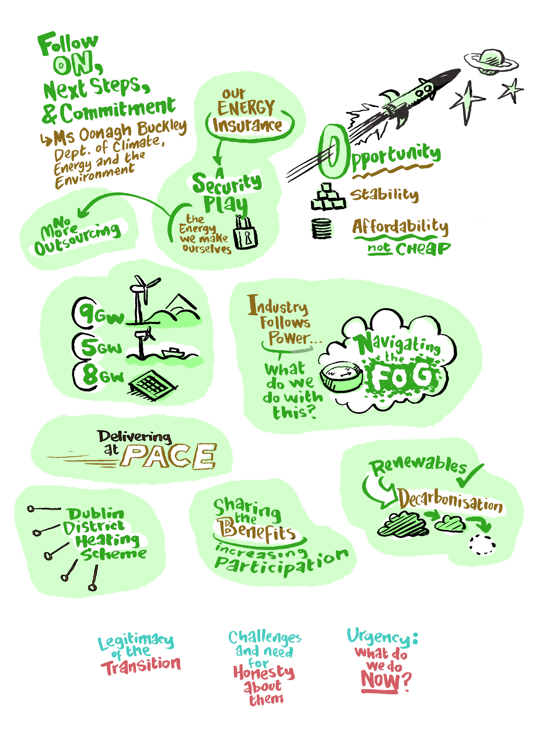 Over 25 speakers and panellists took part across the day’s four main sessions – Minister for Transport and Minister for Climate, Energy and the Environment Darragh O’Brien, TD formally opened proceedings, with IEA’s Dr Brian Motherway providing a keynote opening address drawing all the findings of the work together. Further keynote presentations were delivered by Mr Kevin O’Donovan, Statkraft; Dr Lewis Akenji, Hot or Cool Institute; Prof Frances Fahy, University of Galway; and Dr Paul Deane, University College Cork. Closing remarks came courtesy of Ms Oonagh Buckley, Secretary General at the Department of Climate, Energy & Environment.